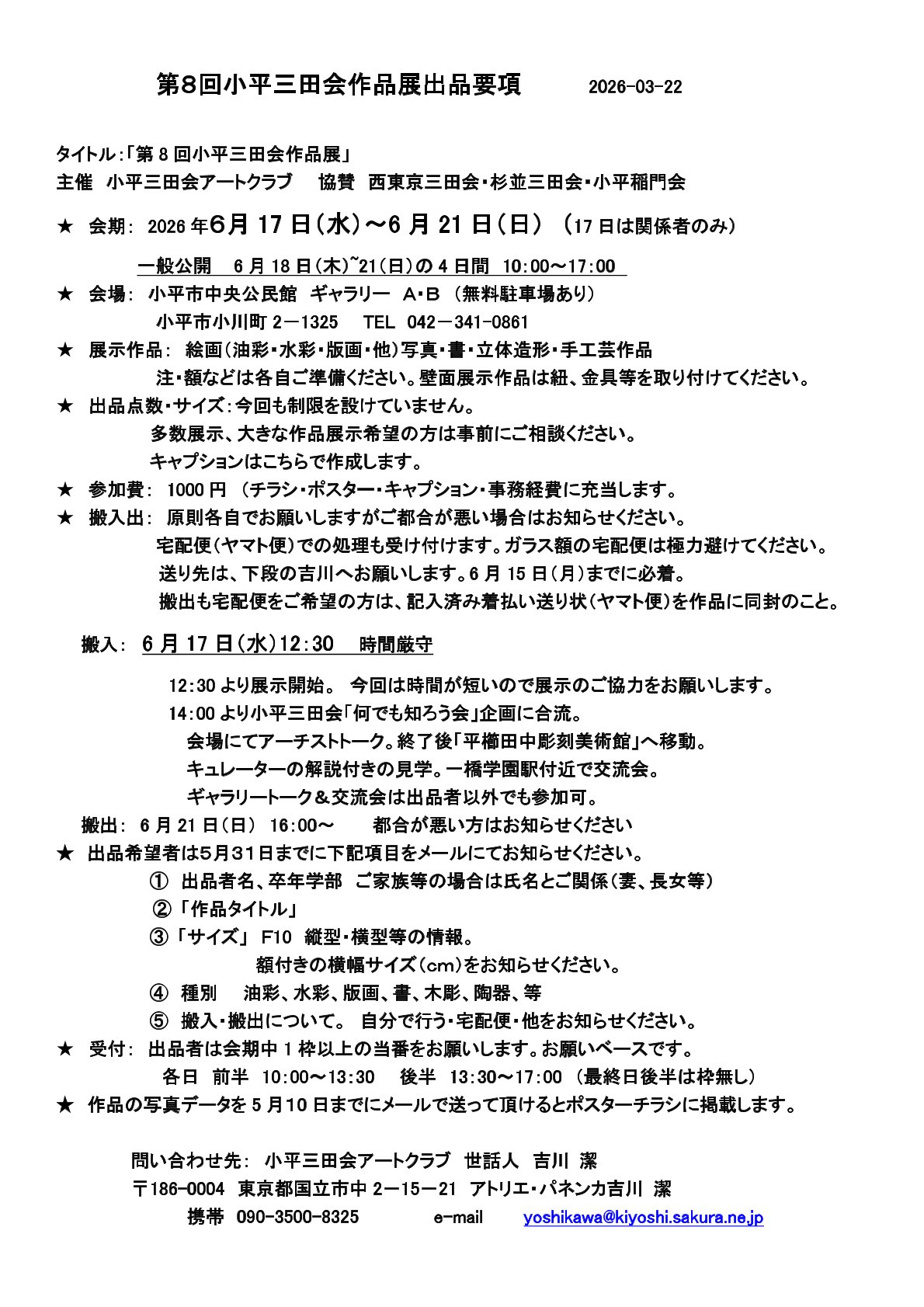 ・展覧会と同時に懇親会出席の有無をご連絡ください。