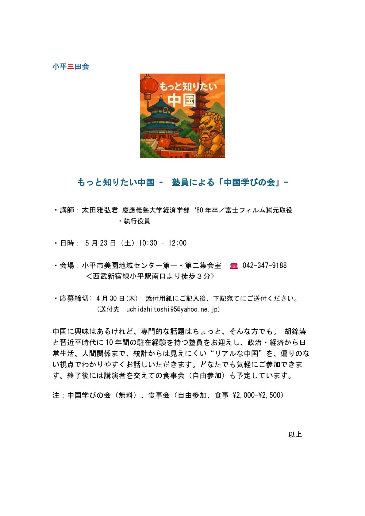 ◆申込み締め切り日=5月8日(金) 若林覚 宛