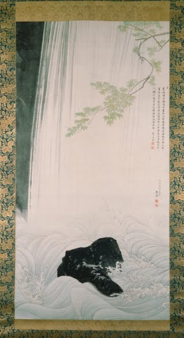 サントリー美術館には応挙の「青楓瀑布図」があります。いかにも「水と生きるサントリー」らしく清涼感あふれる夏の滝を描いています。