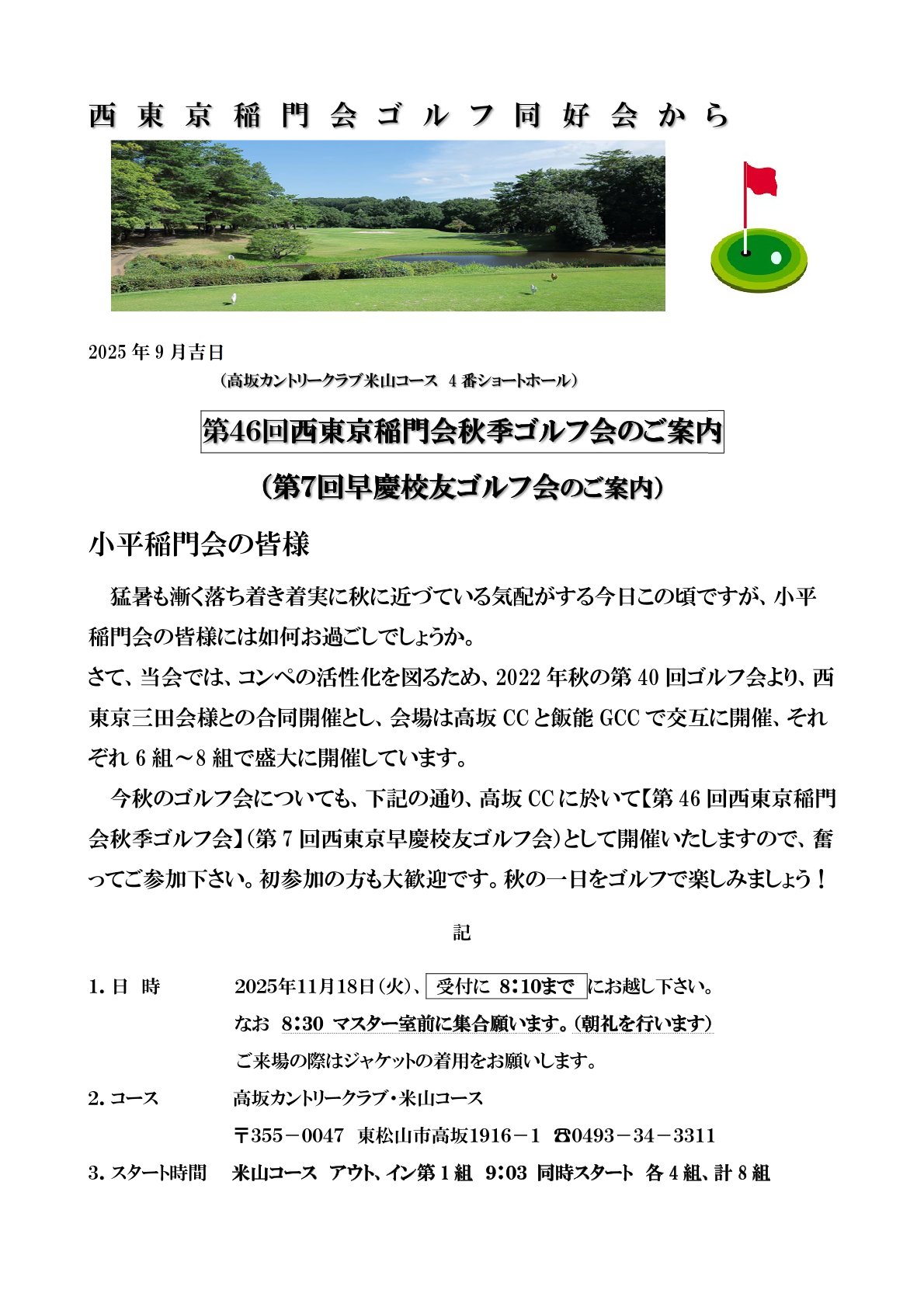 第46回西東京稲門会秋季ゴルフ会のご案内