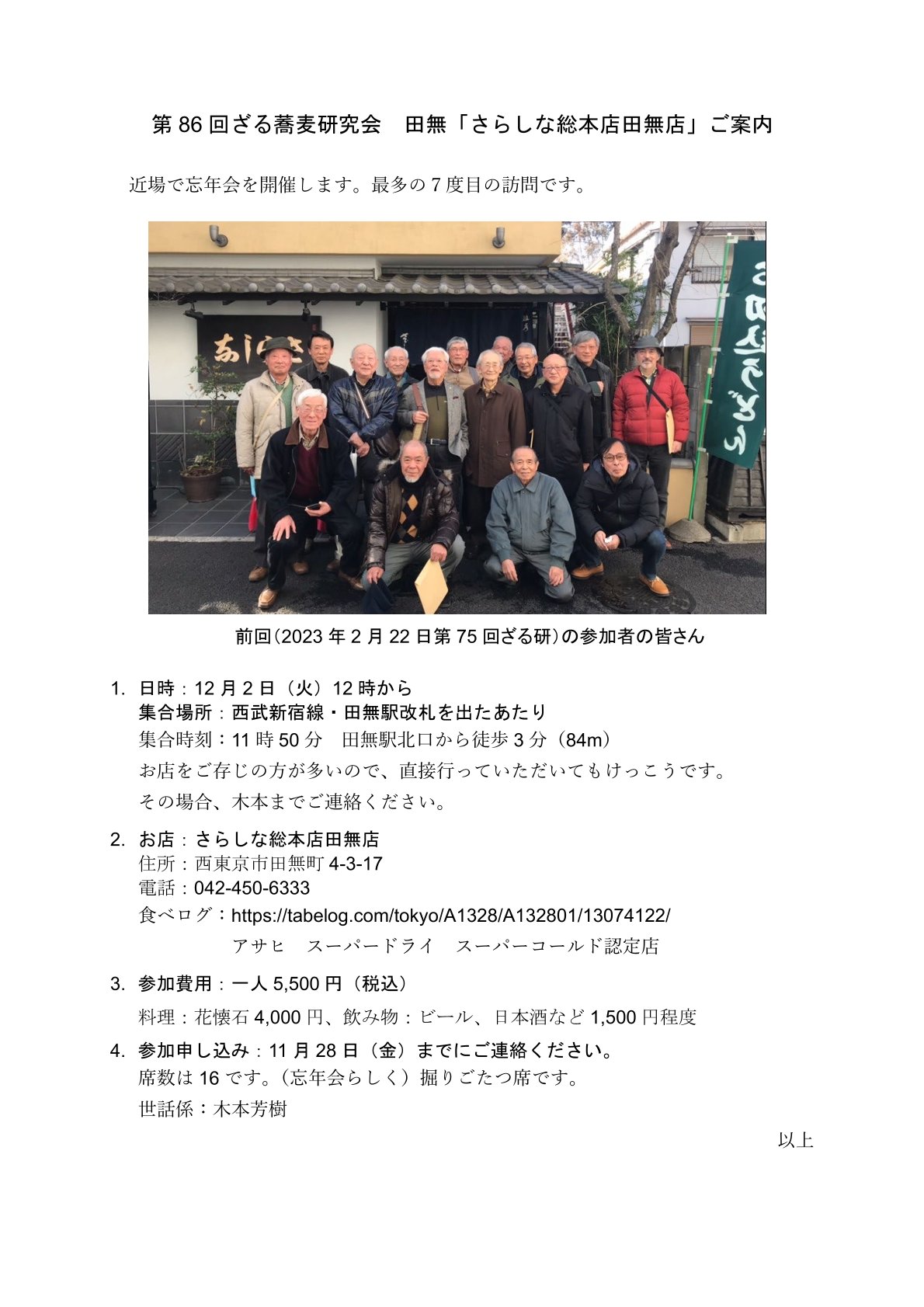〔参加者〕 荒木・佐藤・竹内・増田・松村・山田・山本 (敬称略五十音順)