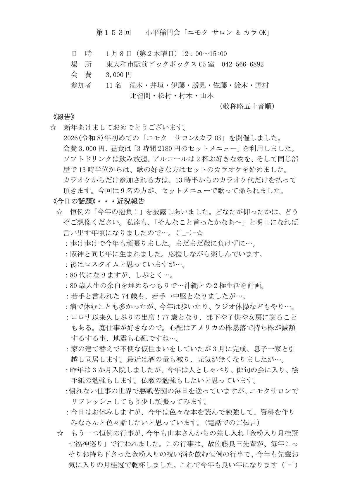 第153回ニモク サロン & カラOKの報告