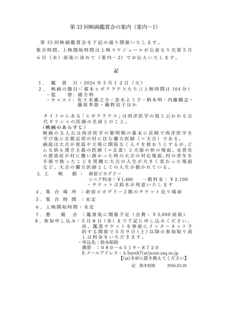 第33回映画鑑賞会のご案内